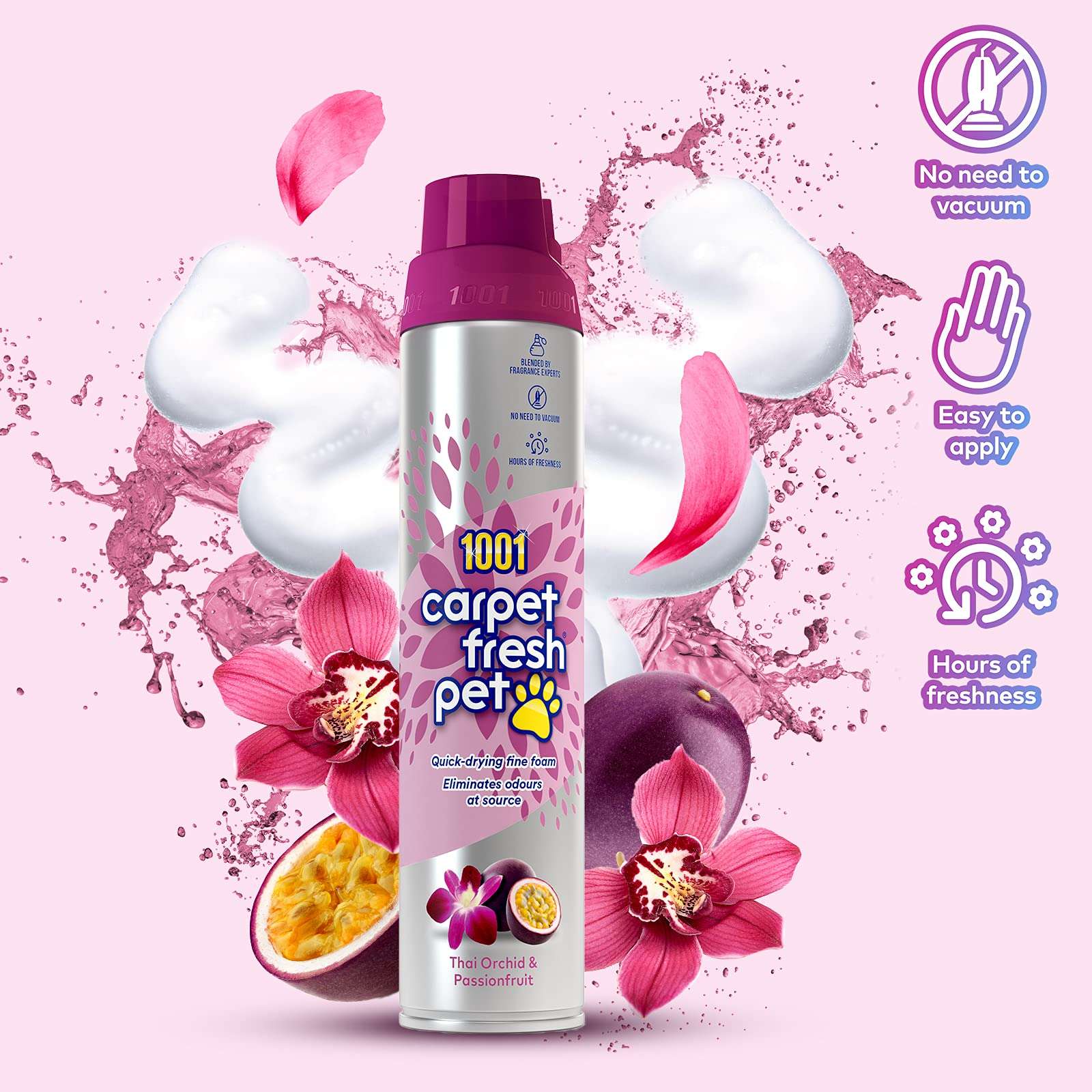 I love 1001 Carpet Fresh Pet Thai Orchid and Passion Fruit! It completely removes pet odours and leaves a delightful, long-lasting fragrance.