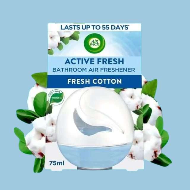 Experience the clean, comforting aroma of freshly laundered cotton with the Air Wick Fresh Cotton Bathroom Air Freshener (75ml). Designed to bring a crisp, laundry-inspired fragrance into your bathroom, this air freshener effectively neutralises odours while providing long-lasting freshness. Ideal for bathroom use, the compact size ensures a discreet, convenient solution for keeping small spaces smelling fresh and inviting. Enjoy the calming scent of fresh cotton, perfect for a bathroom sanctuary.