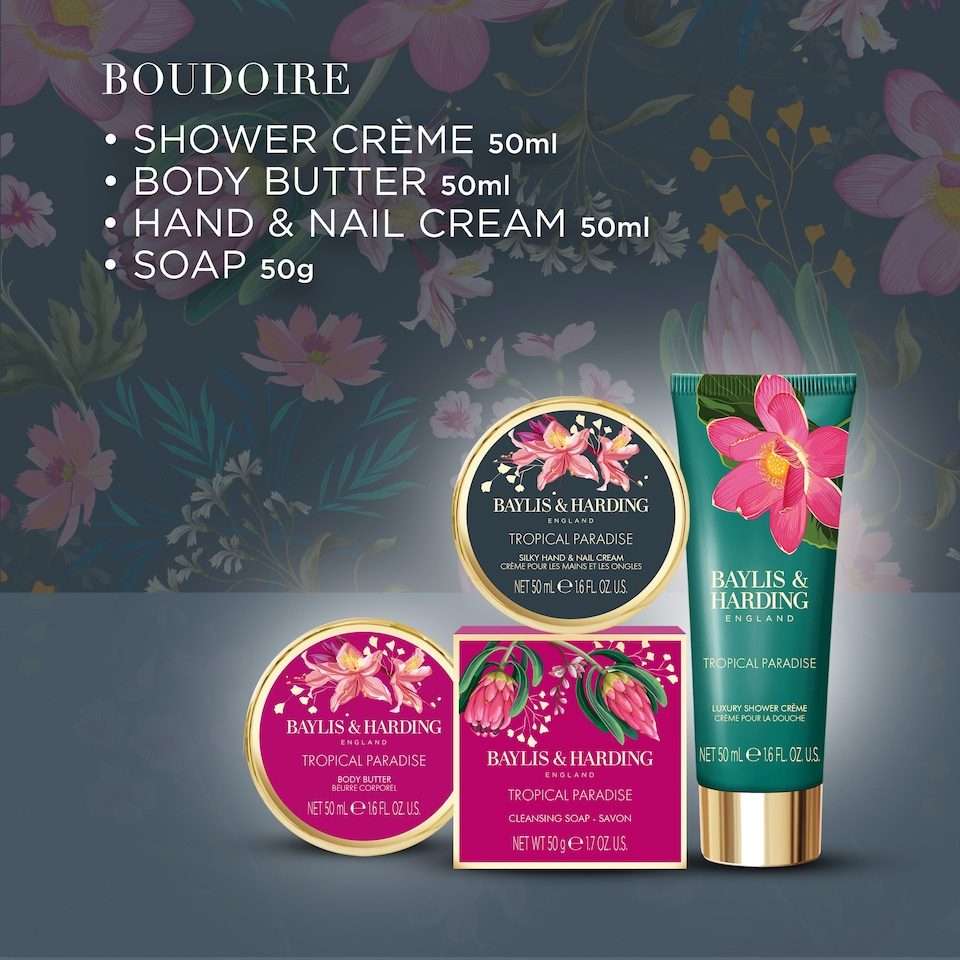 Indulge in pure relaxation with the Baylis & Harding Boudoire Luxury Pamper Tin Gift Set. This beautifully presented collection includes a selection of luxurious bath and body treats infused with the elegant Boudoire fragrance, blending soft florals and warm musk for an irresistibly feminine scent. Presented in a reusable keepsake tin, this set is perfect for pampering yourself or gifting someone special. Whether it’s a relaxing soak or an at-home spa moment, this collection turns everyday self-care into a touch of luxury.