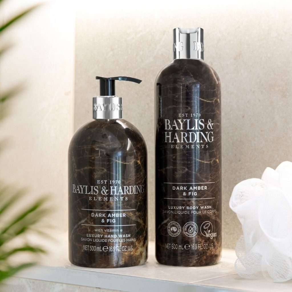 Indulge in the opulence of the Baylis & Harding Dark Amber & Fig Luxury Hand Wash 500ml. This exquisite hand wash is formulated to provide a sumptuous cleansing experience while enhancing the elegance of your bathroom or kitchen. Infused with the warm and sophisticated scents of dark amber and ripe fig, it gently cleanses your hands without stripping them of moisture. Perfect for everyday use, this luxurious hand wash leaves your hands feeling clean, soft, and beautifully scented.