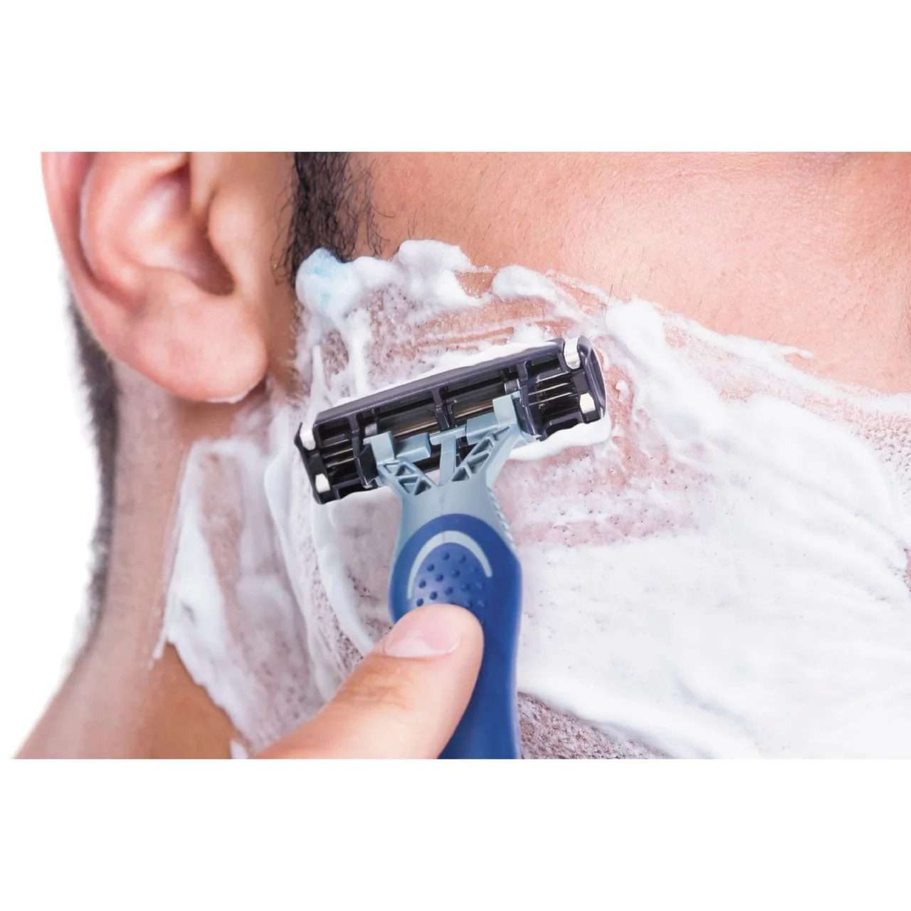 Triple-Blade Flex Technology: Three flexible blades that adapt to your face for a close, even shave.