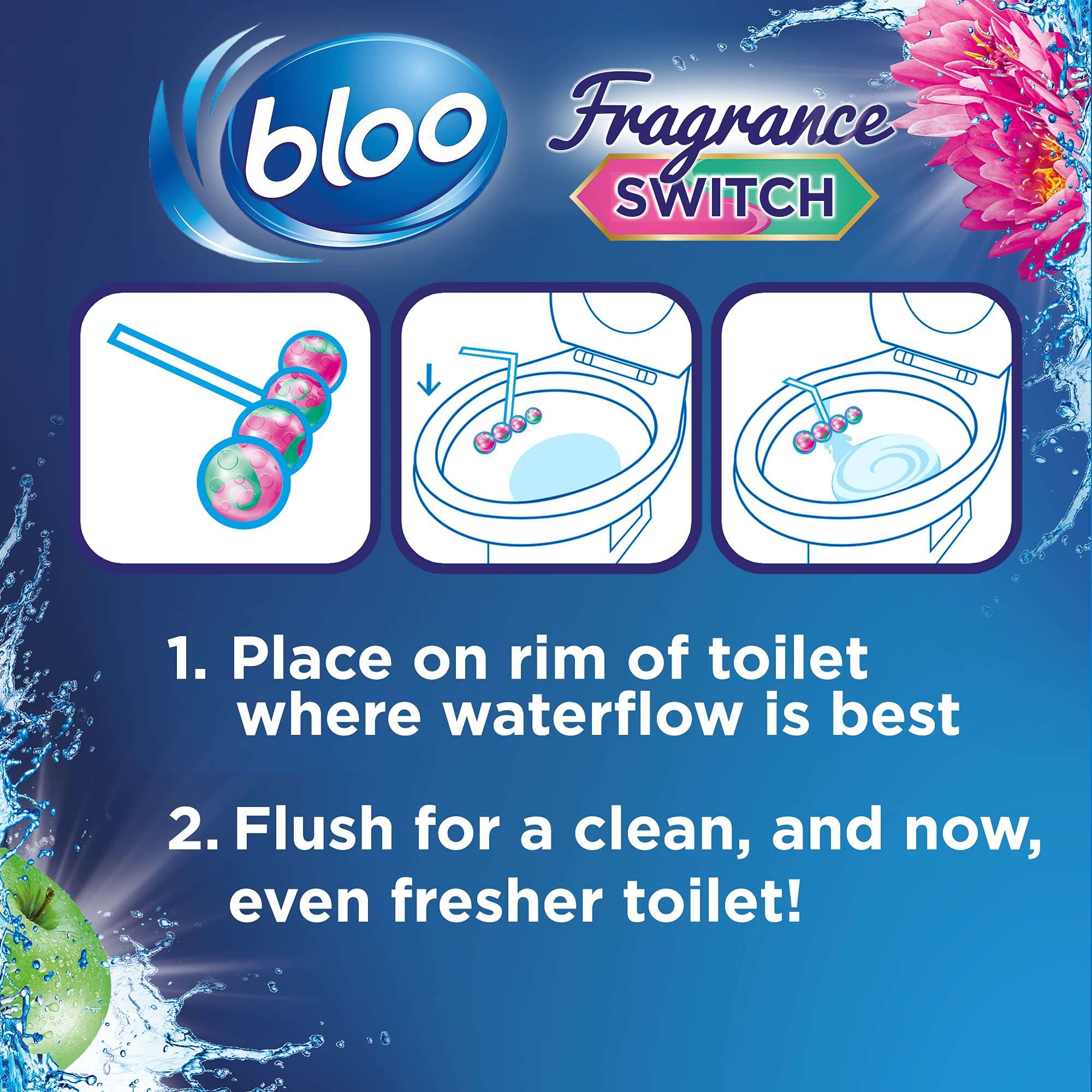 Bloo Floral Apple and Water Lily Rim Block 50g ensures continuous toilet bowl cleaning and freshness with a delightful floral and fruity fragrance. Its advanced formula effectively combats stains and limescale, keeping your toilet sparkling clean with every flush. Infused with the refreshing scents of apple and water lily, it leaves your bathroom smelling fresh and inviting. Easy to install and long-lasting, this rim block is an essential addition to your toilet care routine.