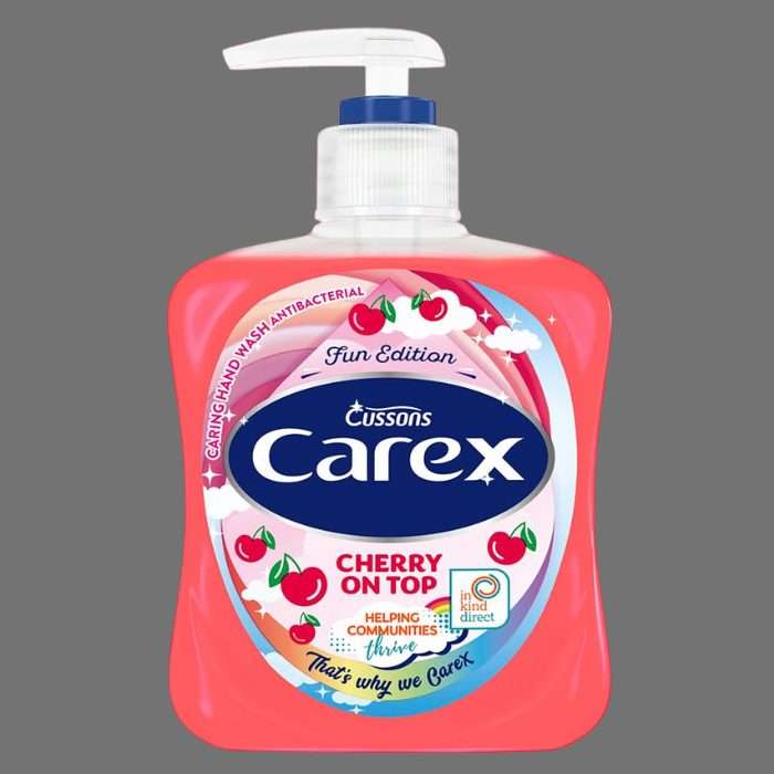 Bring some fun into your hand-washing routine with the Carex Fun Editions Cherry On Top Hand Wash 250ml. This playful hand wash features a delightful cherry fragrance, offering a sweet burst of fruity freshness while effectively cleaning your hands. Dermatologically tested and kind to skin, it’s gentle enough for the whole family. The rich, foaming lather leaves hands feeling clean, fresh, and lightly scented, making it a favourite for both kids and adults.