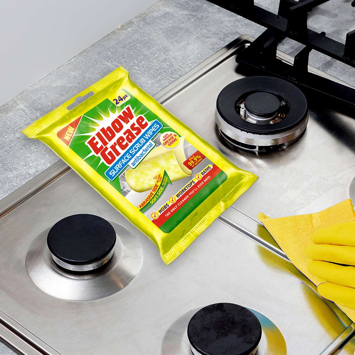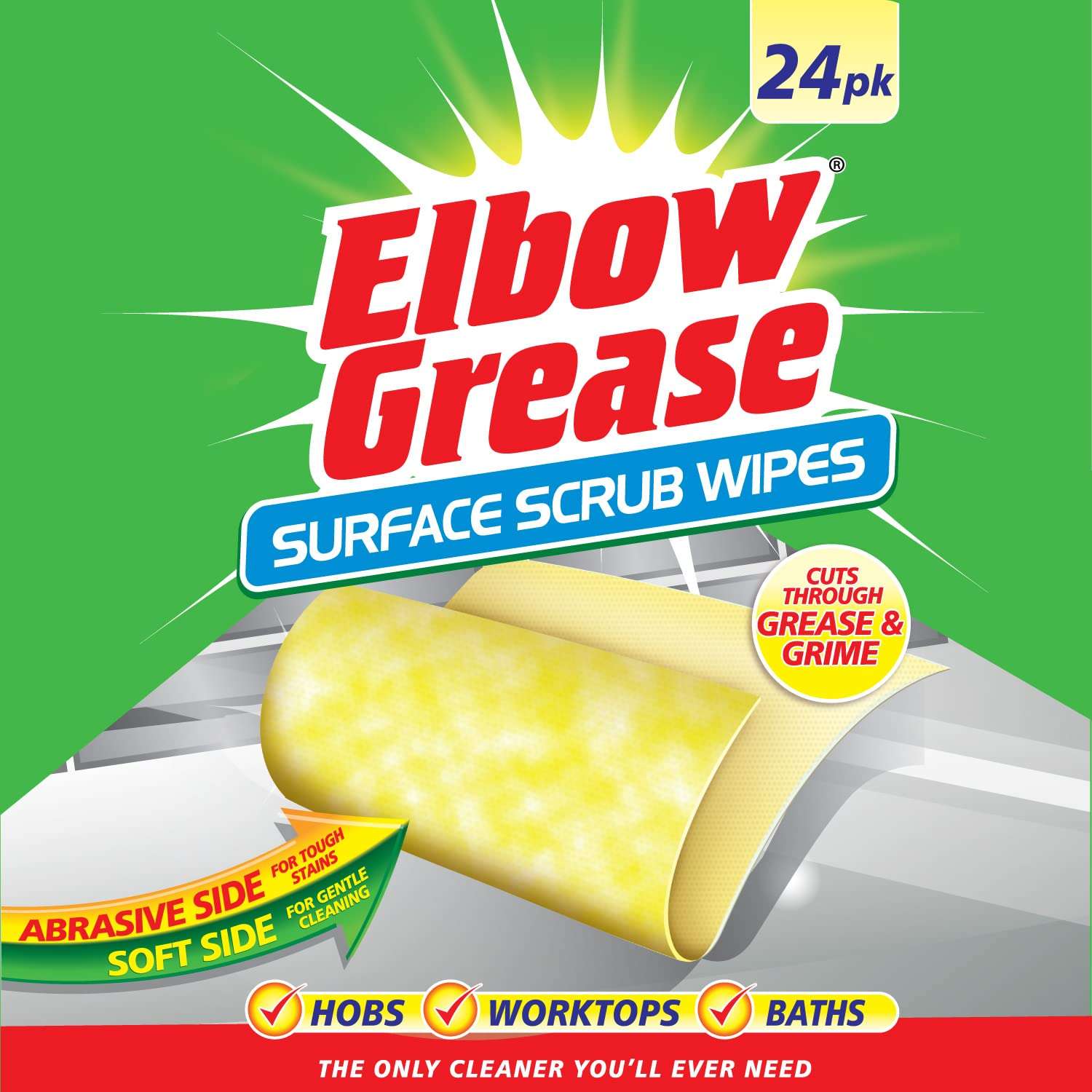 Elbow Grease Anti-Bacterial Surface Scrub Wipes are designed for efficient and hygienic cleaning. These wipes combine powerful cleaning agents with anti-bacterial properties to tackle dirt, grease and bacteria on various surfaces, ensuring a thorough clean.