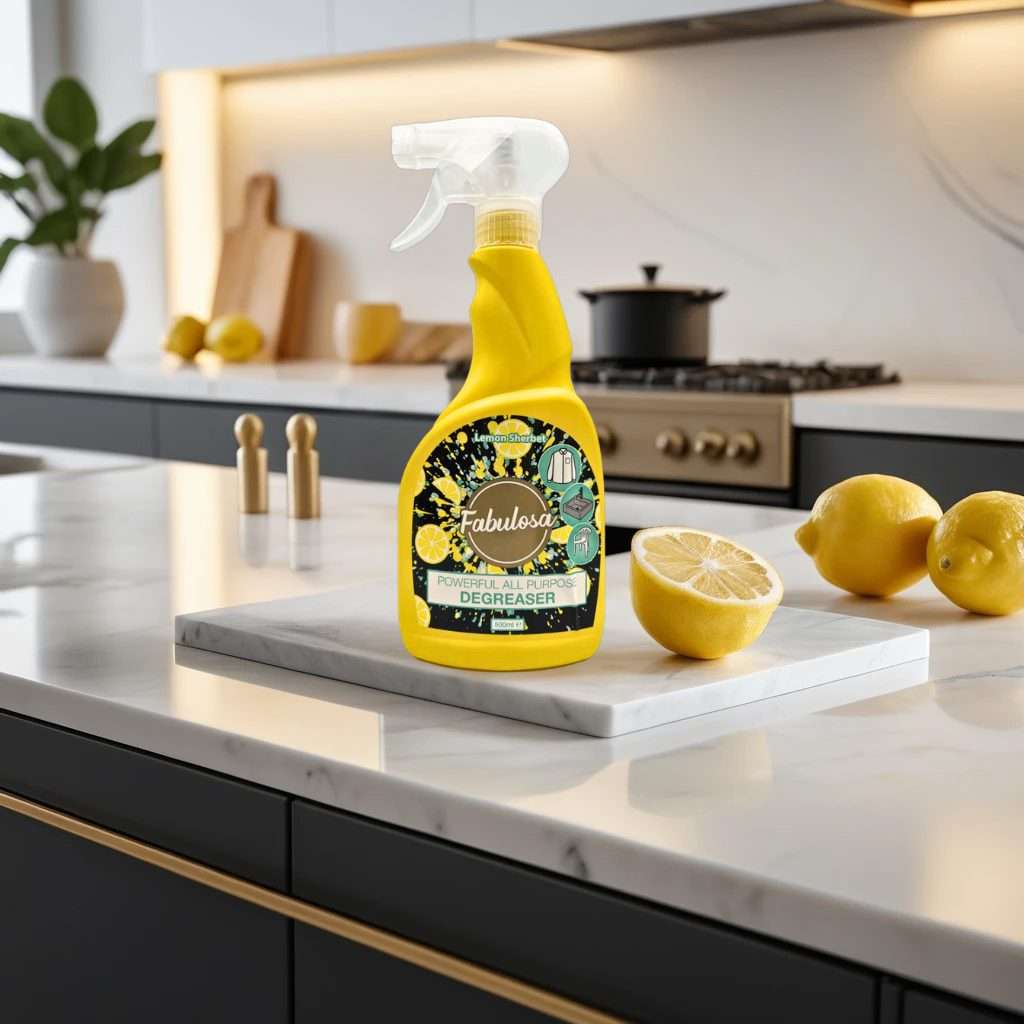 Fabulosa Lemon Sherbet All Purpose Degreaser 500ml is a powerful, multi-surface cleaning solution designed to cut through stubborn grease, oil, and grime with ease. Featuring a vibrant lemon sherbet fragrance, this antibacterial formula eliminates 99.9% of bacteria and viruses while leaving your surfaces sparkling clean and fresh. Perfect for kitchens, appliances, hobs, fabrics, and even outdoor surfaces, this cruelty-free and vegan degreaser delivers professional-level results with every use.