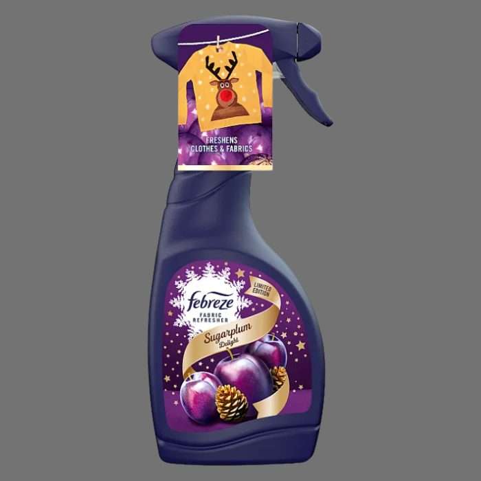 Revive your fabrics with Febreze Sugarplum Delight Fabric Freshener 500 ml, featuring OdourClear™ technology that targets trapped odours at the source rather than masking them. Its festive, fruity blend of sugarplum and exotic fruit notes brings a light, joyful scent to sofas, curtains, carpets, and other hard-to-wash textiles. Dermatologically tested and safe around pets, it’s the perfect seasonal refresh for your home .