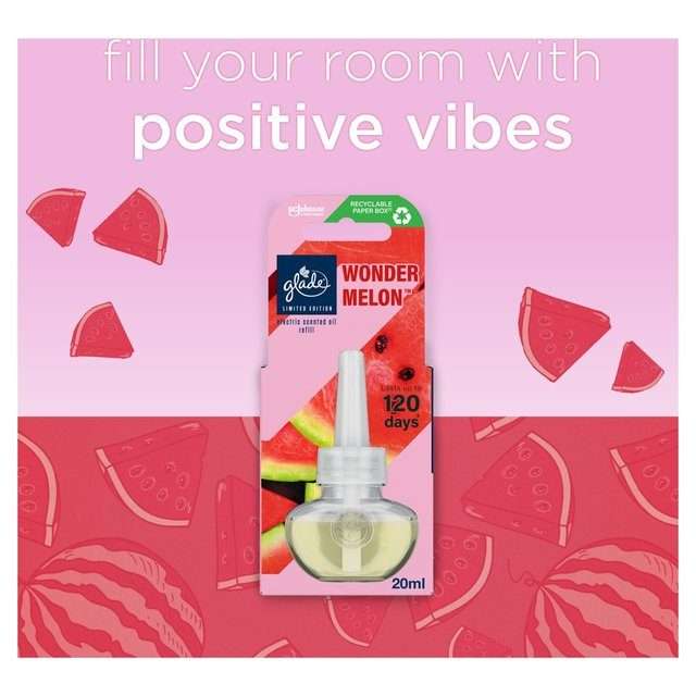 Experience the juicy, refreshing scent of Glade Wonder Melon Limited Edition Plug-In Refill (20ml). This playful and fruity fragrance captures the sweetness of ripe melon, adding a splash of summer to any room. Perfect for refreshing your space, this limited-edition refill is designed to create a vibrant, uplifting atmosphere. Ideal for use in any Glade plug-in diffuser, it’s an effortless way to bring the energy of summer indoors.