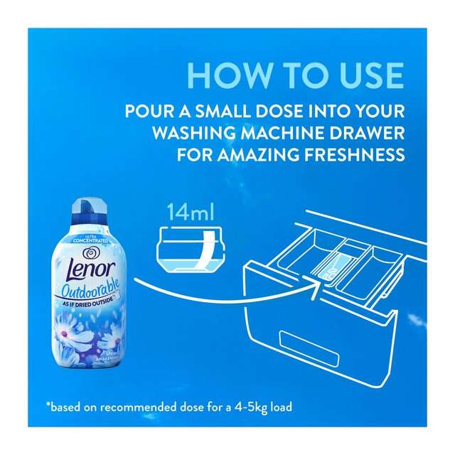 Bring the essence of springtime outdoors into your laundry with Lenor Outdoorable Spring Awakening Fabric Conditioner (504ml), delivering up to 36 washes of fresh softness and invigorating scent. Inspired by a spring day outdoors, this fabric conditioner infuses your clothes with a crisp, revitalizing fragrance. Perfect for everyday laundry, it keeps fabrics soft, helps reduce wrinkles, and makes ironing simpler, while leaving your clothes with a fresh, just-washed feeling.