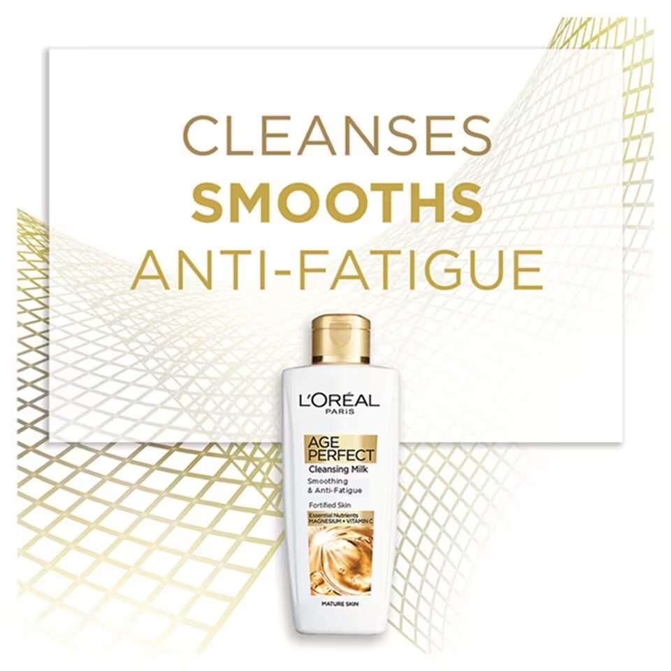 L’Oreal Paris Age Perfect Cleansing Milk is specifically designed for mature skin, offering a gentle yet thorough cleanse that removes makeup, impurities, and dirt while nourishing and hydrating the skin. Enriched with essential oils and Vitamin E, this cleansing milk revitalizes and comforts the skin, leaving it soft, smooth, and refreshed.