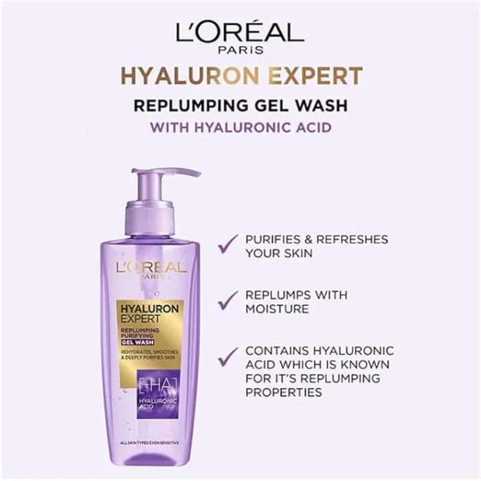 The L’Oreal Paris Hyaluron Expert Gel Wash is a hydrating face wash designed to cleanse and replenish the skin’s moisture barrier. Enriched with Hyaluronic Acid, known for its moisture-retaining properties, this gel wash effectively removes impurities, makeup, and excess oils without drying out the skin. The lightweight gel formula leaves your skin feeling clean, refreshed, and supple, with a boost of hydration.