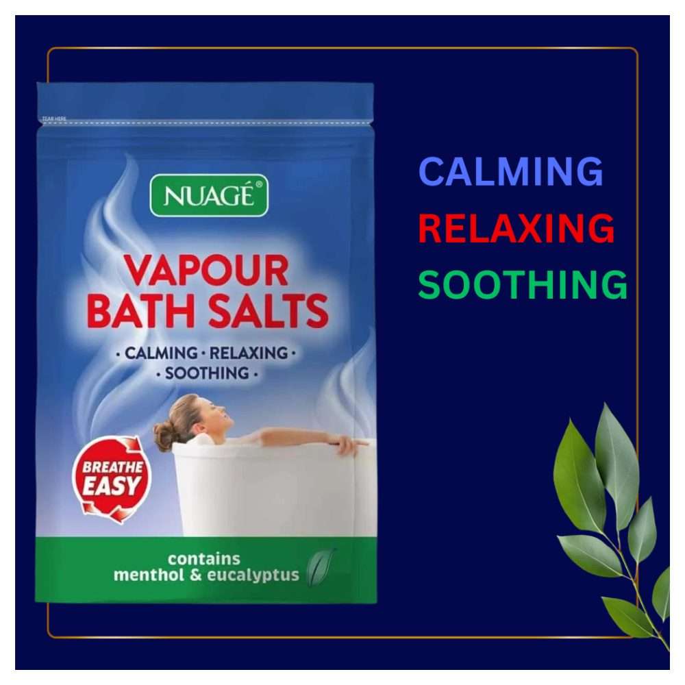 Unwind and rejuvenate with Nuage Vapour Relaxing Bath Salts 450g. Specially formulated to provide a calming and relaxing bath experience, these bath salts help soothe tired muscles and clear your senses. Infused with essential oils, this blend is ideal for relieving tension after a long day, leaving you feeling refreshed and revitalised. The vapour action helps open airways, making it perfect for use during colder months or when feeling congested. Enjoy a spa-like experience from the comfort of your home.