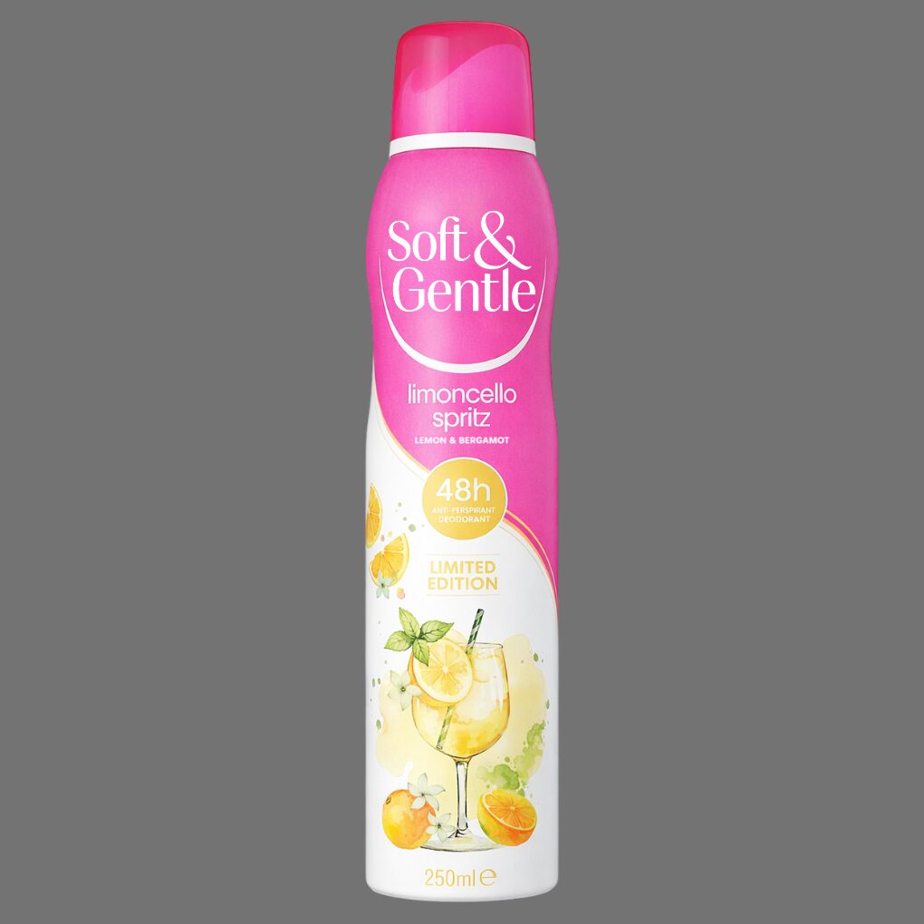 Soft & Gentle Limoncello Spritz Anti-Perspirant 250ml is a limited-edition fragrance that combines the zesty freshness of lemon with a sparkling, effervescent twist. Part of Soft & Gentle’s Triple Action range, it offers 48-hour sweat and odour protection while being gentle on the skin. This vegan-friendly and cruelty-free anti-perspirant ensures long-lasting freshness and confidence throughout the day.