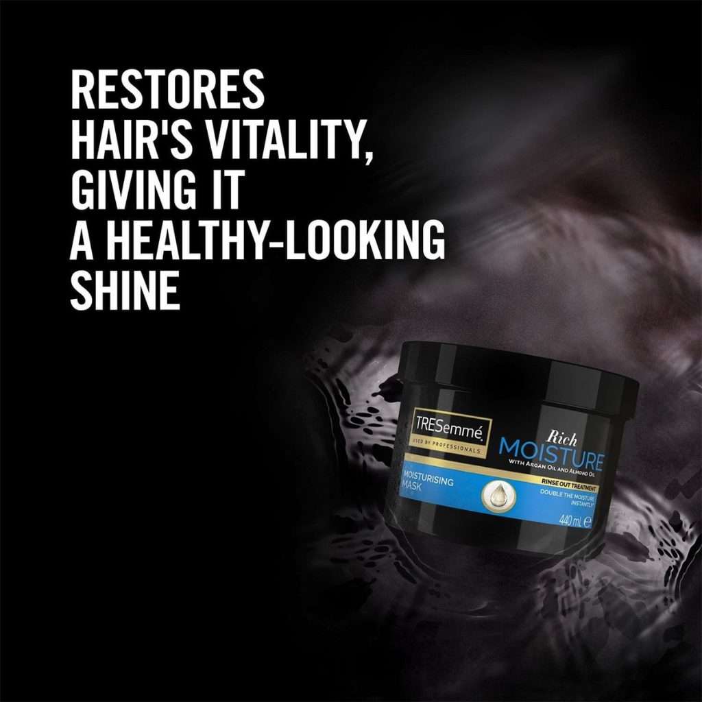 Transform your hair care routine with TRESemmé Rich Moisture Hair Mask 440ml. Specially designed to deeply nourish and hydrate, this mask restores softness, shine, and manageability to dry or damaged hair. Perfect for weekly treatments, its professional-quality formula locks in moisture and leaves hair feeling luxuriously smooth.
