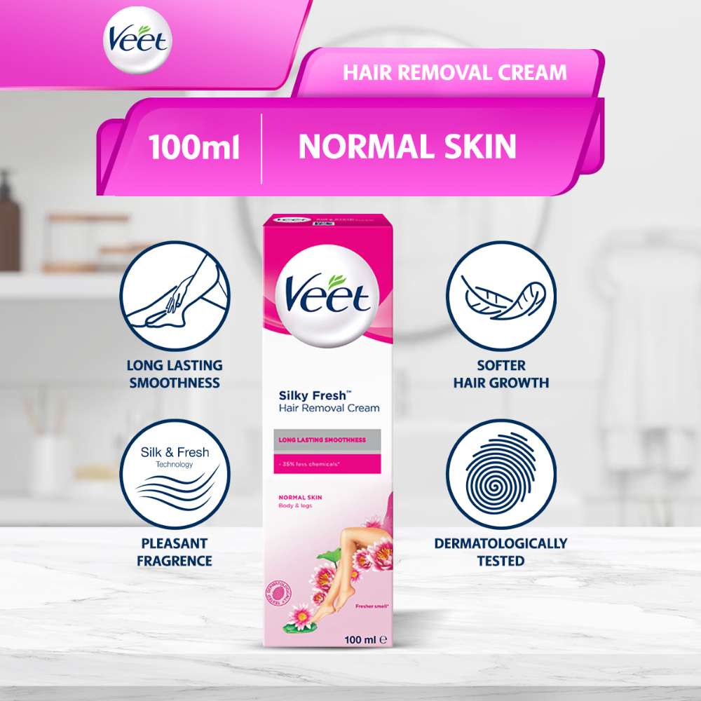 The Veet Silky Fresh Hair Removal Cream for Normal Skin provides a quick and effective hair removal solution, leaving your skin silky smooth and refreshed. Formulated with Silk & Fresh™ technology, this cream not only removes hair close to the root but also hydrates skin for up to 24 hours. Its light, pleasant fragrance makes the experience more enjoyable, and it’s suitable for use on the legs, arms, underarms, and other areas.